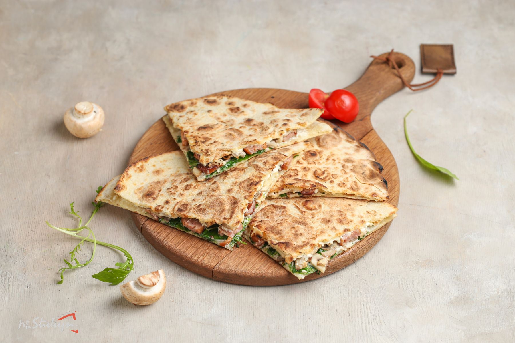 Պանրային նրբերշիկ, սունկ, ռուկոլա, չերրի լոլիկ և սերուցքային պանիր