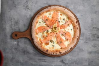 Սաղմոն, կիտրոն, Մոցարելլա պանիր, սերուցքային սոուս, կապար և օրեգանո